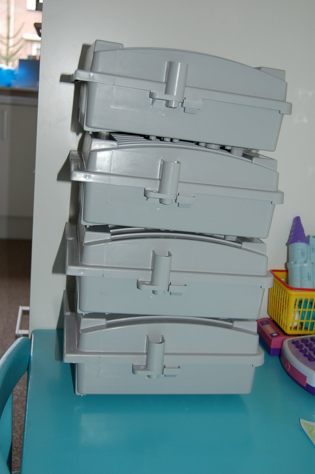 De enclosures (4 vd 5) met daarnaast alle componenten uitgestald.