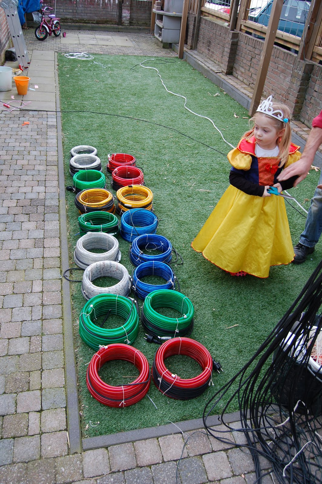 De lichtslangen zijn netjes op rolletjes gewikkeld, zodat ik ze volgend seizoen gemakkelijk kan afrollen.