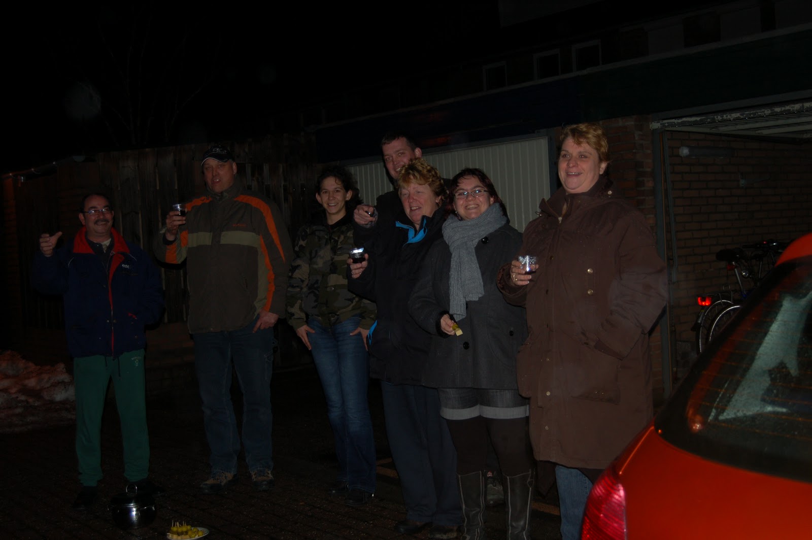 Zo kwam buurvrouw Marion nog gezellig met warme gluhwein en toastjes aan.