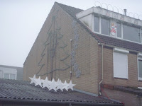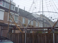 Zaterdag met de zij-achterbuurvrouw Ilona wat draadjes op controllers aangesloten en Zondag samen met Niels de boogjes voor op de schutting geplaatst. Dit zijn pixel-boogjes en beloven erg spectaculair te worden.....